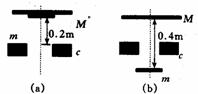 [例5]有两块大小不同的圆形薄板(厚度不计)质量分别为M和m,半径分别为R和r,两板之间用一根长为0.4m的轻绳相连结.开始时,两板水平放置并叠合在一起,静止于高度为0.2m处如图(a)所示.然后自由下落到一固定支架C上,支架上有一半径为R/(r<R/<R=的圆孔,圆孔与两薄板中心在圆板中心轴线上,木板与支架发生没有机械能损失的碰撞,碰撞后,两板即分离,直到轻绳绷紧.在轻绳绷紧瞬间,两物体具有共同速度V,如图4一22(b)所示.问: