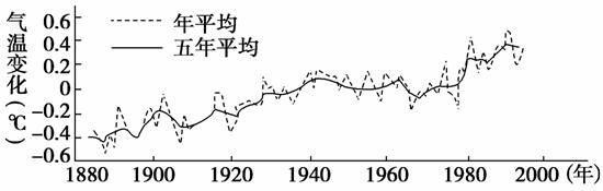 解析:由气温曲线可以判断,全球气温在升高,气候变暖趋势明显。在此影响下,作物生长地发生改变。为抑制全球变暖,应减少二氧化碳排放量。