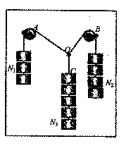 在竖直木板上铺有白纸,固定两个光滑的滑轮A和B,将绳子打一个结点O,每个钩码的重量相等,当系统达到平衡时,根据钩码个数读出三根绳子的拉力
