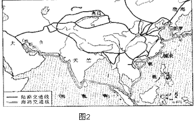 图2是一张未完成的中国古代对外交通路线示意图。根据所学知识,可以判断与该图对应的朝代是 ( )