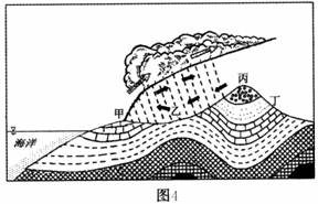 图4为“某地天气系统和地质构造示意图”。读图完成11--13题。