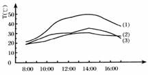 下图是某气象观察小组在某一天对汕头中学操场(裸地)、汕头大学足球场(草地)和中山公园(林地)三个典型地点进行观测获得的地面温度变化曲线图。(1)(2)(3)三条曲线对应的顺序是