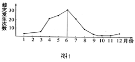 读蝗灾发生次数月份统计图(图1)和虫神庙分布图(图2),完成62-64题。