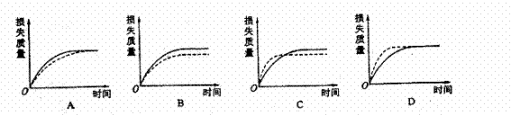 4.将mg块状碳酸钙跟足量盐酸反应,反应物损失的质量随时间的变化曲线如下图的实线所