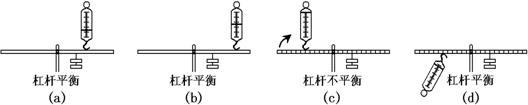 30.某小组同学研究有关杠杆平衡的问题,他们在已调节水平平衡的杠杆上,用弹簧秤、钩码分别进行实验,研究过程如图所示(弹簧秤对杠杆的力为动力、钩码对杠杆的力为阻力,钩码均相同且位置保持不变),请你根据实验情况和测量结果进行分析和归纳。