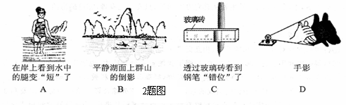 2.图中所示四种现象中,由于光的反射而形成的           (   )