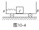 (★★★★)小车AB静置于光滑的水平面上,A端固定一个轻质弹簧,B端粘有橡皮泥,AB车质量为M,长为L,质量为m的木块C放在小车上,用细绳连结于小车的A端并使弹簧压缩,开始时AB与C都处于静止状态,如图10-4所示,当突然烧断细绳,弹簧被释放,使物体C离开弹簧向B端冲去,并跟B端橡皮泥粘在一起,以下说法中正确的是