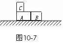 (★★★★★)如图10-7所示,在光滑水平面上有两个并排放置的木块A和B,已知mA=0.5 kg,mB=0.3 kg,有一质量为mC=0.1 kg的小物块C以20 m/s的水平速度滑上A表面,由于C和A、B间有摩擦,C滑到B表面上时最终与B以2.5 m/s的共同速度运动,求: