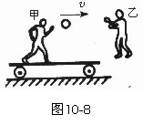 (★★★★★)如图10-8所示甲、乙两人做抛球游戏,甲站在一辆平板车上,车与水平地面间摩擦不计.甲与车的总质量M=100 kg,另有一质量m=2