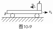 (★★★★★)如图10-9所示,一质量为M的平板车B放在光滑水平面上,在其右端放一质量为m的小木块A,m<M,A、B间动摩擦因数为μ,现给A和B以大小相等、方向相反的初速度v0,使A开始向左运动,B开始向右运动,最后A不会滑离B,求: