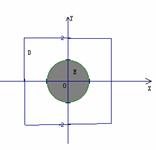 解:如图:区域D表示边长为4的正方形ABCD的内部(含边界),区域E表示单位圆及其内部,因此