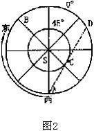 ③按经线确定南北方向是绝对的,北极是地球上最北的地点,它的四面八方都是南方,南极则相反;按纬线确定东西方则是相对的,理论上讲地球上没有最东的地点,也没有最西的地点,判定东西方向,首先要选择劣弧段(两点间的差值小于180°的弧段),再按地球自西向东的自转方向确定方位。如图2,为南半球,我们先画出A、B两点间的地球自转方向箭头,根据上述法则,A在西,B在东,B在A的东方。