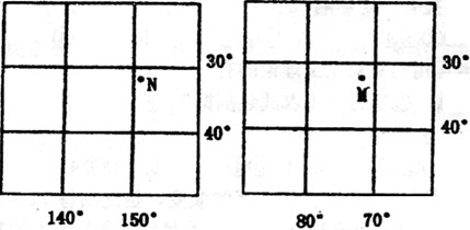 C.M地在N地的西北方向 D.两地中N地先看到新千年的曙光