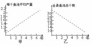 乙调查表明:全县鱼池总个数由第1年30个减少到第6年10个。