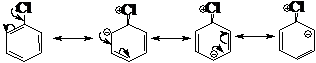 (2)在同一分子的所有共振极限式中,原子核都不能发生移动,能够移动或重新排布的是离域电子(一般指π电子或孤对电子,在讨论超共轭效应时也可以是C-H键的σ电子),如氯苯分子可以表示为: