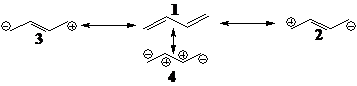 其中4式对丁二烯的贡献可以忽略,而2式和3式的贡献也比1式小得多,真实的丁二烯分子主要与1式相似。