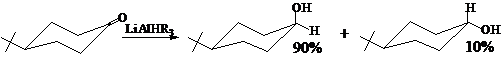 应当注意,空间效应对反应方向或选择性的影响,发生在形成过渡态之前,而不是体现在中间体或产物上,所以在很多情况下,空间效应可能导致生成内能比较高的产物。如: