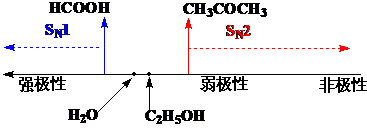 注意:碱性强亲核试剂,易引起亲核取代反应,如:I ¯、HC≡C¯、¯CN、NH3等。