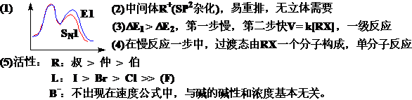 E1 :反应分为2步,离去基先离去,p-键后生成