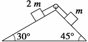 (08江苏7)如图所示,两光滑斜面的倾角分别为30°和45°、质量分别为2m