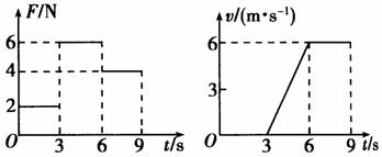 (山东滨州4月)放在水平面地面上的一物块,受到方向不变的水平推力F的作用,力F的大小与时间t的关系和物块速度v与时间 t的关系,如图所示,重力加速度 g =10 m/s2.求: