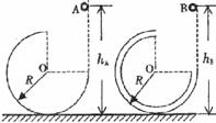 12、如图所示,两个3/4圆弧轨道固定在水平地面上,半径R相同,A轨道由金属凹槽制成,B轨道由金属圆管制成,均可视为光滑轨道.在两轨道右侧的正上方分别将金属小球A和B由静止释放,小球距离地面的高度分别用hA和hB表示,对于下述说法,正确的是