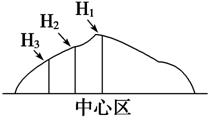 右图是城市建筑物平均高度变化的示意图。H1、H2、H3分别表示城市建筑物平均高度。距城市中心越远,建筑物平均高度越低。形成这种变化特点的原因是( )
