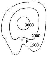 (原创题)房价问题一直是城市人们关注的热点问题,影响房价的因素很多。读“我国某城市住宅小区平均房价等值线分布示意图”,图中数字为平均房价(单位:元/平方米),回答23-24题。