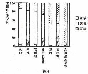 A.阴坡坡度大于阳坡坡度 B.平均海拔水田低于旱地