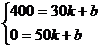 39. 解:设y与x之间的关系为y=kx+b,由题意得
