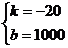 (2)当x=0时,y=m=-20×0+1000=1000.