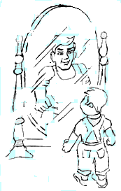 We can see in the picture a little boy standing in front of a mirror. He’s letting his imagination fly. What he sees in the mirror is not his physical self but what he will be like in twenty years. Although he is small and short now, he believes he will grow up to be a tall and strong young man like Yao Ming, who he admires. I think this picture tries to tell us that we should always look into the future with hope and confidence.