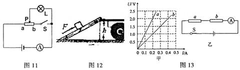 20. 两电阻a、b各自的电流与两端电压的关系图线如图13甲所示.如果把a、b两个电阻串联接成如图13乙所示的电路时,电流表的示数为0.2A。电流在1min内产生的热量是    J.