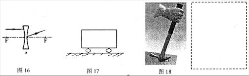 26.如图18所示,小明用羊角锤起钉子。请在右侧的方框内画出羊角锤的杠杆示意图并画出手所用拉力F的力臂。