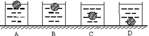 10.-个球,先后在盛有不同液体的容器A、B、C和D中保持静止,情况如图所示。四个容器中的液面到容器底面的距离相同,容器底面受到的液体压强最大的是( )