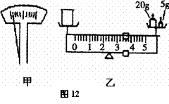 a.     先将天平放在水平桌面上,然后将游码移到横梁标尺的零刻度,若发现天平指针位如  图12甲中所示,则应将平衡螺母向    侧调节.