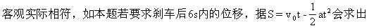 [错解原因]出现以上错误有两个原因。一是对刹车的物理过程不清楚。当速度减为零时,车与地面无相对运动,滑动摩擦力变为零。二是对位移公式的物理意义理解不深刻。位移S对应时间t,这段时间内a必须存在,而当a不存在时,求出的位移则无意义。由于第一点的不理解以致认为a永远地存在;由于第二点的不理解以致有思考a什么时候不存在。