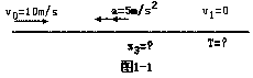 [分析解答]依题意画出运动草图1-1。设经时间t1速度减为零。据匀减速直线运动速度公式v1=v0-at则有0=10-5t解得t=2S由于汽车在2S时