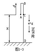 方法一:可将物体的运动过程视为匀变速直线运动。根据题意画出运动草图如图1-3所示。规定向下方向为正,则V0=-10m/sg=10m/s2据h=v0t+