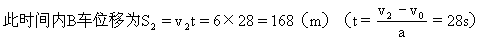 例3 经检测汽车A的制动性能:以标准速度20m/s在平直公路上行使时,制动后40s停下来。现A在平直公路上以20m/s的速度行使发现前方180m处有一货车B以6m/s的速度同向匀速行使,司机立即制动,能否发生撞车事故?