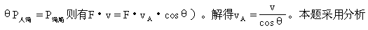 [评析]方法二:我们可以把绳子和滑轮看作理想机械。人对绳子做的功等于绳子对船做的功。我们所研究的绳子都是轻质绳,绳上的张力相等。对于绳上的C点来说即时功率P人绳=F·v。对于船上A点来说P绳船=FvA·cos