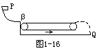[错解]因为皮带轮转动起来以后,物块在皮带轮上的时间长,相对皮带位移弯大,摩擦力做功将比皮带轮不转动时多,物块在皮带右端的速度将小于皮带轮不动时,所以落在Q点左边,应选B选项。