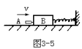 例3 如图3-5,木块B与水平桌面间的接触是光滑的,子弹A沿水平方向射入木块后留在木块内,将弹簧压缩到最短。现将子弹、木块和弹簧合在一起作研究对象,则此系统在从子弹开始射入木块到弹簧压缩到最短的过程中 [ ]