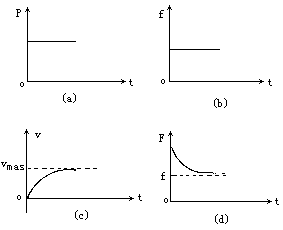 [评析]发动机的输出功率P恒定时,据P=F·V可知v变化,F就会发生变化。牵动ΣF,a变化。应对上述物理量随时间变化的规律有个定性的认识。下面通过图象给出定性规律。(见图3-12所示)