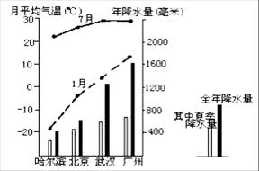 (4)我国降水量的地区分布规律是   ,降水的季节分配特点是