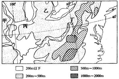 (2)图中500米以上的区域所表示的地形区是       ,该地区最重要的矿产资源是      。(2分)