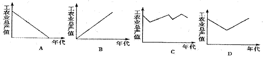 下列图示中,最能显示“文革”期间工农业总产值变化趋势的一幅是: