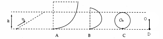 11.(2009广州市高三模拟)如图所示,小球以初速度为v0从光滑斜面底部向上滑,恰能到达最大高度为h的斜面顶部。右图中A是内轨半径大于h的光滑轨道、B是内轨半径小于h的光滑轨道、C是内轨半径等于h光滑轨道、D是长为