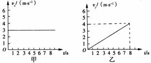 12.(07北京海绽区期末练习)质量为m=2 kg 的物体在光滑的水平面上运动,在水平面上建立x0y坐标系,t=0时,物体位于坐标系的原点0.物体在x轴和y轴方向上的分速度vx、vy随时间t变化的图象如图甲、乙所示.求: