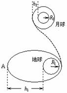 7.(山东省东营市胜利一中2009届高三上学期期中考试卷.物理.7)如图7所示,“嫦娥奔月”的过程可以简化为:“嫦娥一号”升空后,绕地球沿椭圆轨道运动,远地点A距地面高为h1,然后经过变轨被月球捕获,再经多次变轨,最终在距离月球表面高为h2的轨道上绕月球做匀速圆周运动。若已知地球的半径为R1、表面重力加速度为g0,月球的质量为M、半径为R2,引力常量为G,根据以上信息,可以确定(  )